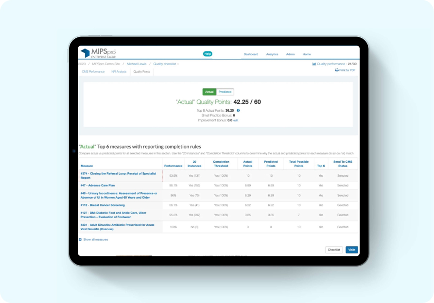 Contact our Sales team to discuss the smartest solution to ensure you meet your quality reporting goals and maximize your final score.